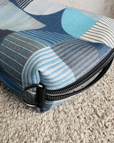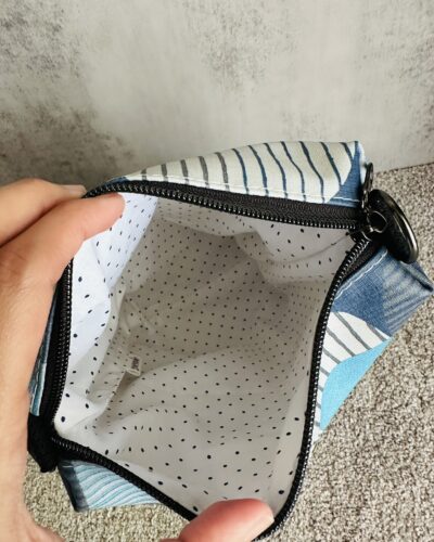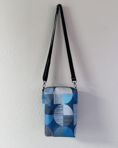 Introducing our GeoBlue Crossbody Bag – a perfect blend of style and practicality. Made from soft, high-quality vinyl with a striking blue geometric print, this bag adds a modern edge to any outfit. The natural 1-inch cotton black webbing strap offers both comfort and strength, while the sleek gunmetal hardware and black zipper provide a touch of understated elegance. Inside, the white and blue polka dot cotton lining adds a fun, vibrant pop of color. Whether you’re heading out for a day of errands or meeting friends, this crossbody bag is your go-to for effortless style and everyday convenience.