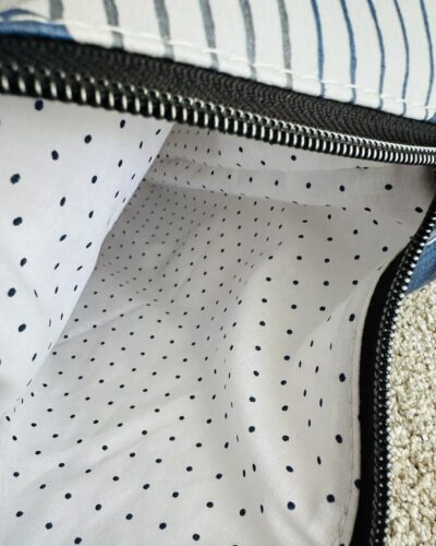 - White blue polka dot cotton lining