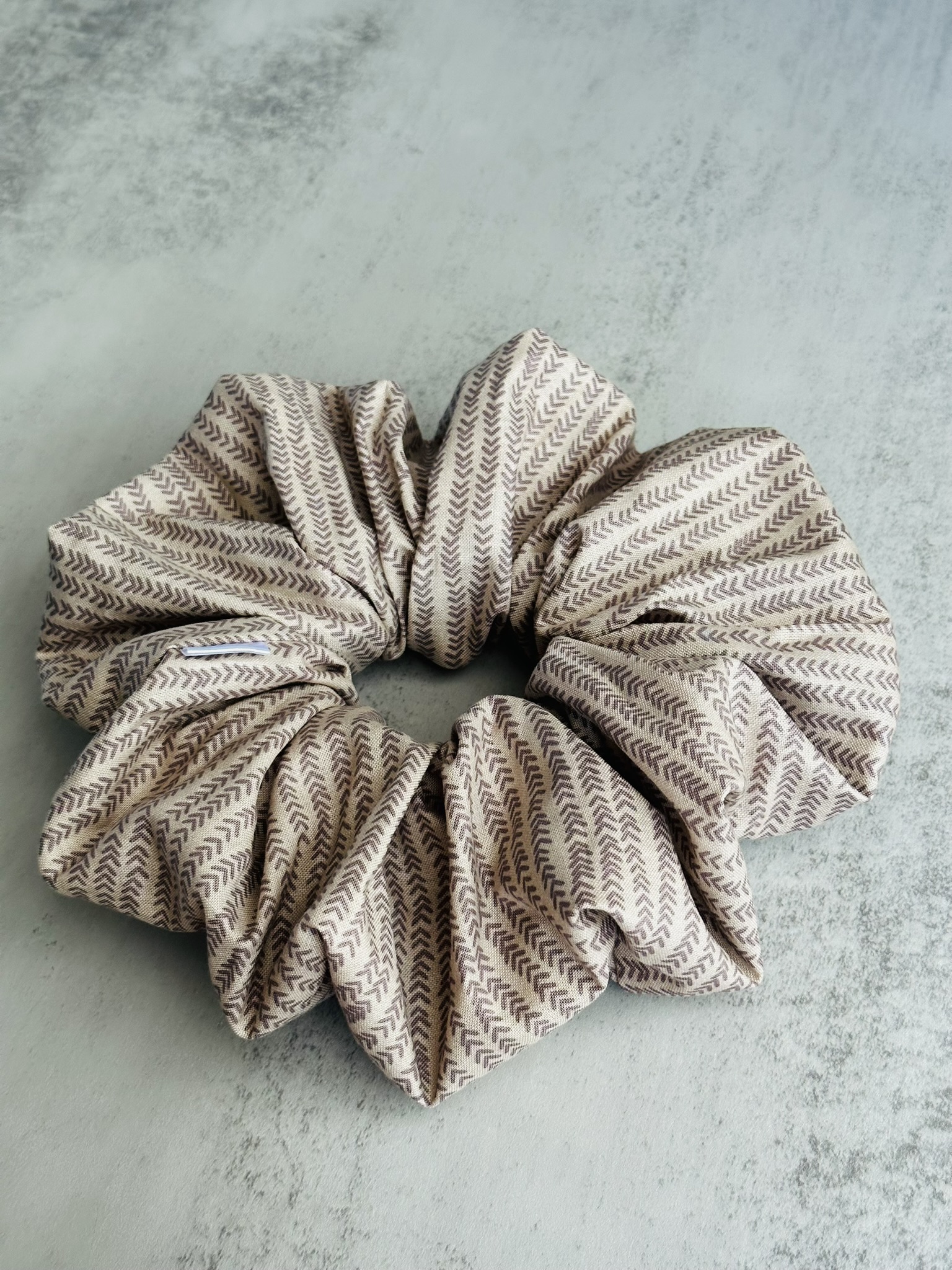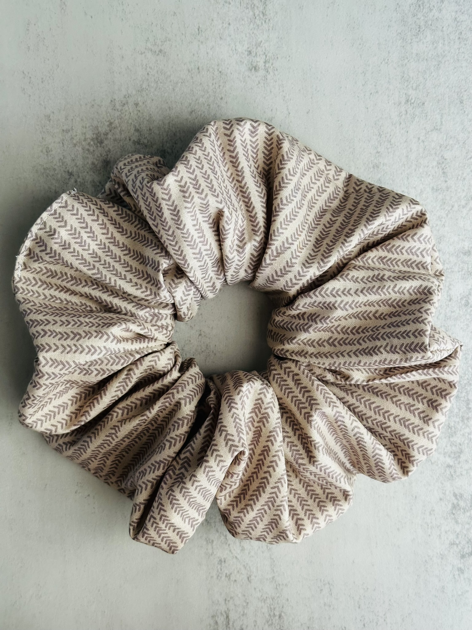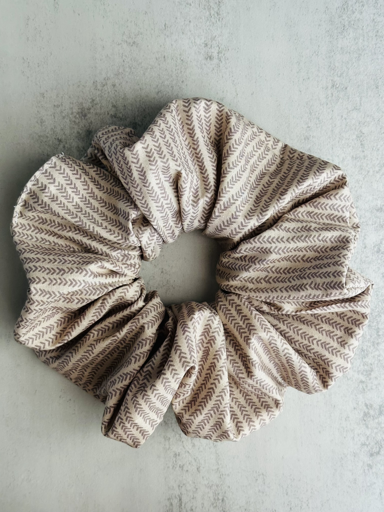 Giant Cotton Scrunchie in Light Brown with Dark Brown Caret Print