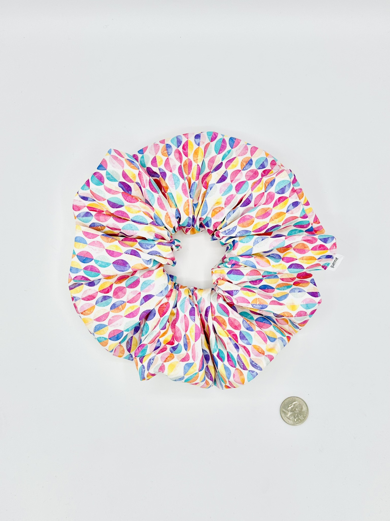 Prism Giant Geometric Rainbow Scrunchie – Handmade Cotton Hair Accessory